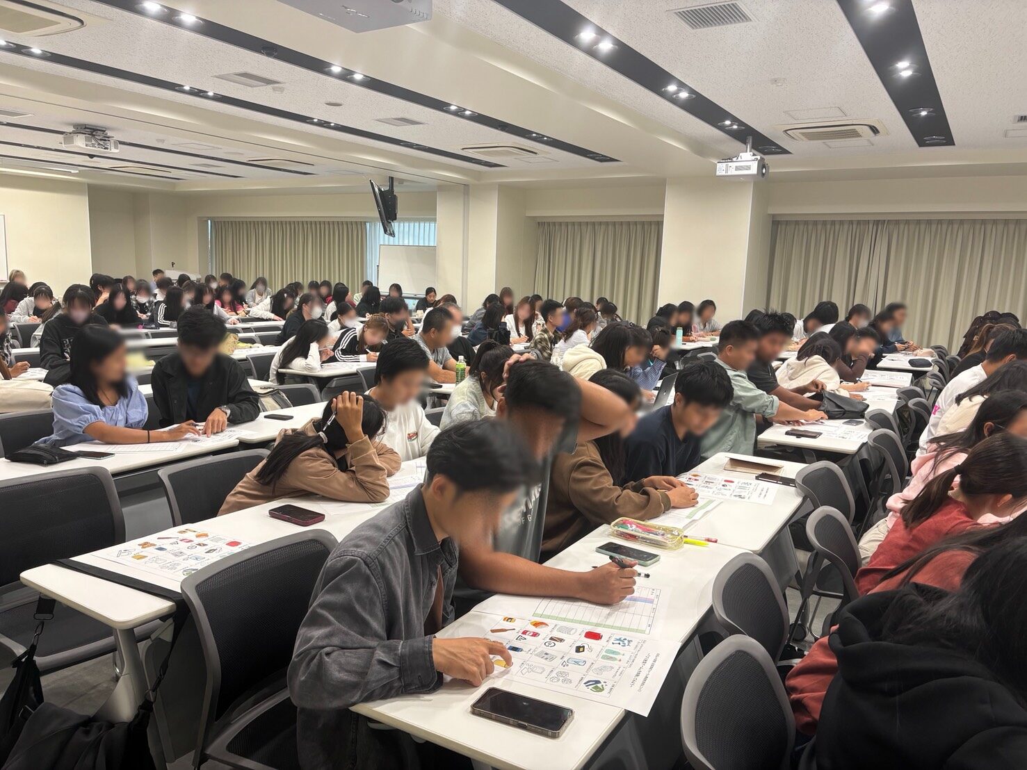 後半では、ゴミを燃やすことで発生する熱を利用して電気を生み出す“ゴミ発電(廃棄物発電)”の仕組みを紹介しました。佐賀県内での実際の取り組みを例に、発電効率を高めるために正しい分別がいかに重要かを説明しました。燃えるごみ、燃えないごみ、資源ごみなどの分別ポイントを具体的に示し、学生の皆さんにも実際にクイズやワークショップを通して、一緒に考えてもらいました。